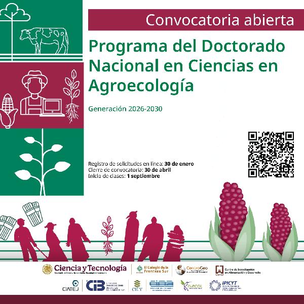 CentroGeo te invita a ser parte de la tercera generación del Programa Nacional del Doctorado en Ciencias en Agroecología, que impulsan 9 centros públicos de la #Secihti. ...